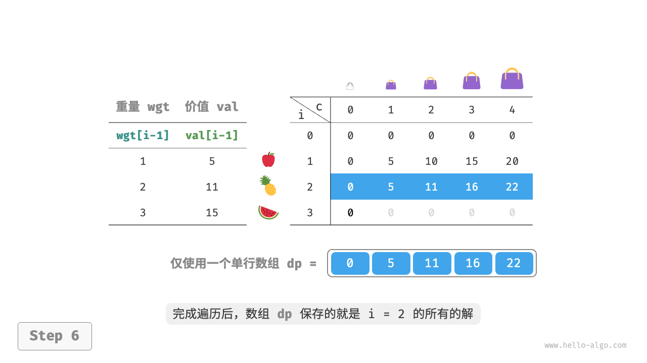 这个遍历顺序与 0-1 背包正好相反。请借助下图来理解两者的区别。